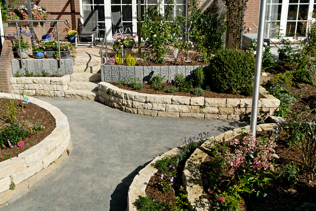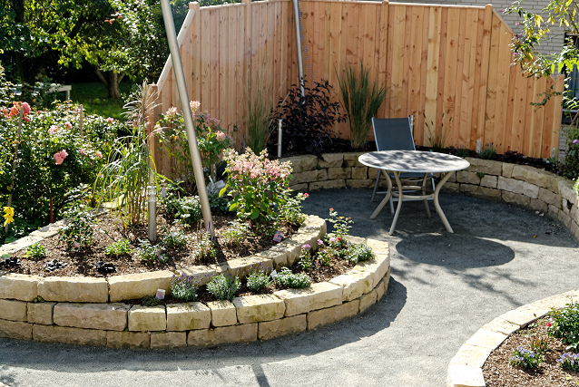Dieses Projekt zeigt, wie sich auch auf begrenztem Raum individuelle Gartenträume verwirklichen lassen. Im hinteren Bereich entstand eine grüne Wohlfühloase mit Trockenmauer-Treppe, die Höhenunterschiede elegant ausgleicht. Ein liebevoll gestalteter Gartenweg mit wassergebundener Wegedecke führt durch das neu angelegte Grün. Vor dem Haus sorgt eine solide Pflasterung für Struktur und Ordnung. Verarbeitet wurde regionaler Thüster Kalkstein – ein Naturmaterial, das Beständigkeit und Heimatverbundenheit vereint.